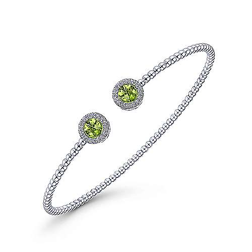 14K White Gold Round Peridot and Diamond Halo Bujukan Bangle