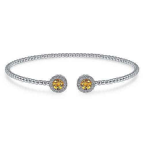 14K White Gold Round Citrine and Diamond Halo Bujukan Bangle