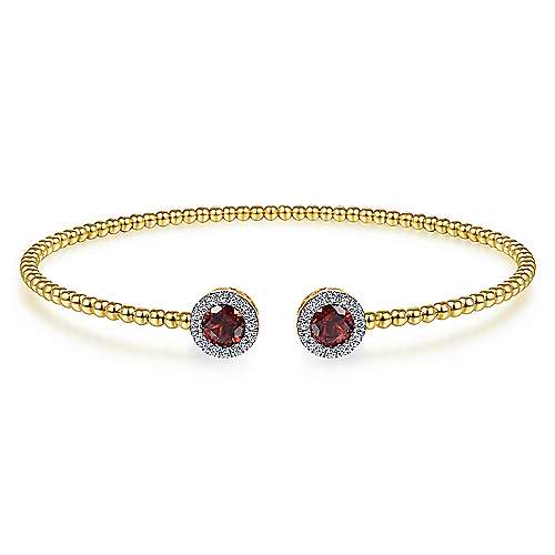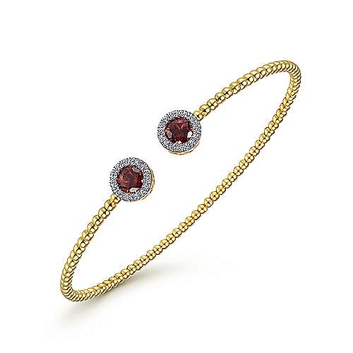 14K Yellow Gold Round Garnet and Diamond Halo Bujukan Bangle