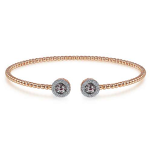14K Rose Gold Round Manmade Alexandrite and Diamond Halo Bujukan Bangle