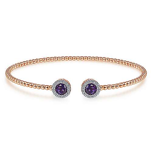 14K Rose Gold Round Amethyst and Diamond Halo Bujukan Bangle