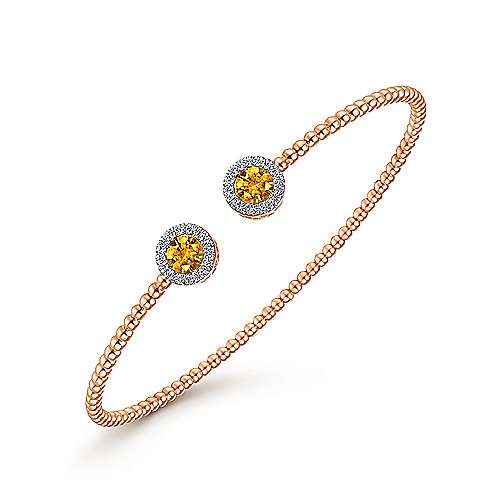 14K Rose Gold Round Citrine and Diamond Halo Bujukan Bangle