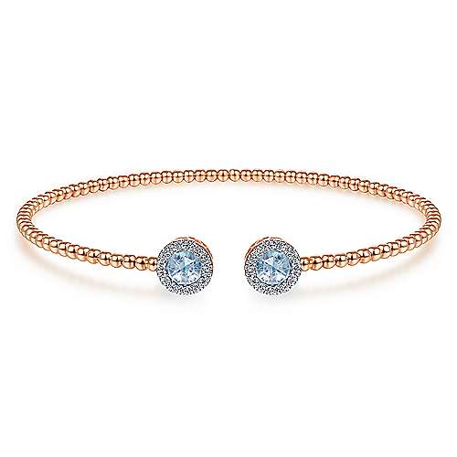 14K Rose Gold Round Sky Blue Topaz and Diamond Halo Bujukan Bangle