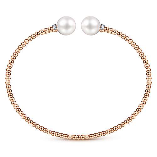 14K Rose Gold Bujukan Bead Split Bracelet with Pearl and Diamond Caps