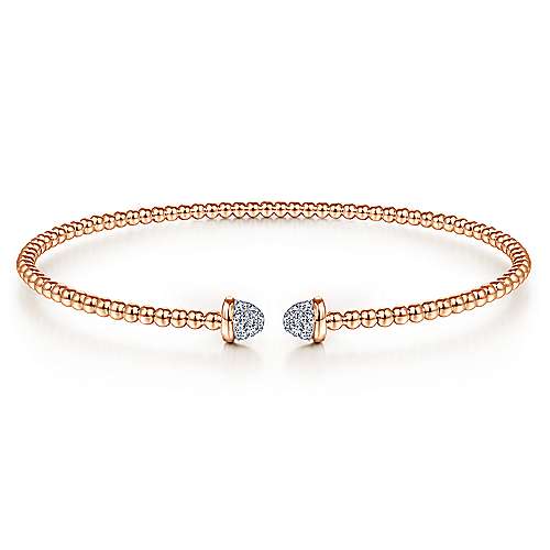14K Rose Gold Bujukan Bead Cuff Bracelet with Diamond Pavé Caps