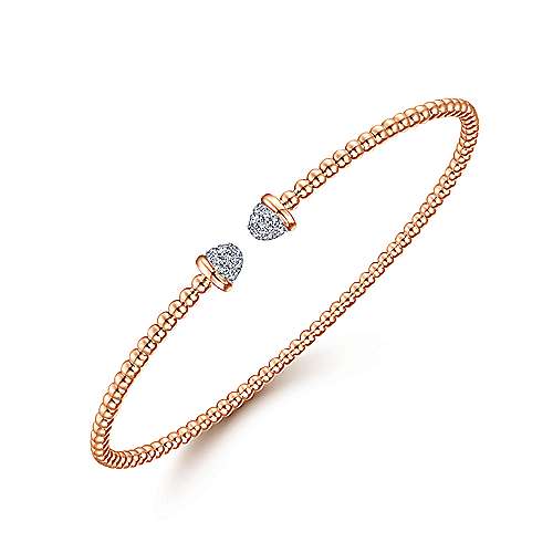 14K Rose Gold Bujukan Bead Cuff Bracelet with Diamond Pavé Caps