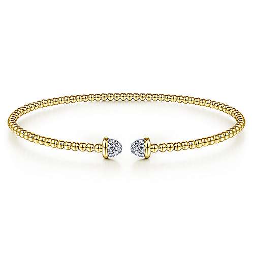 14K Yellow Gold Bujukan Bead Cuff Bracelet with Diamond Pavé Caps