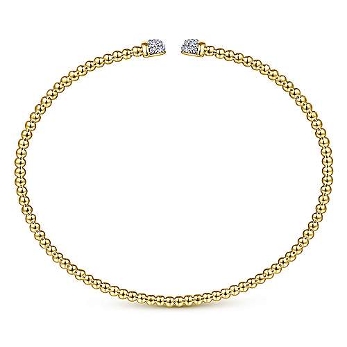 14K Yellow Gold Bujukan Bead Cuff Bracelet with Diamond Pavé Caps