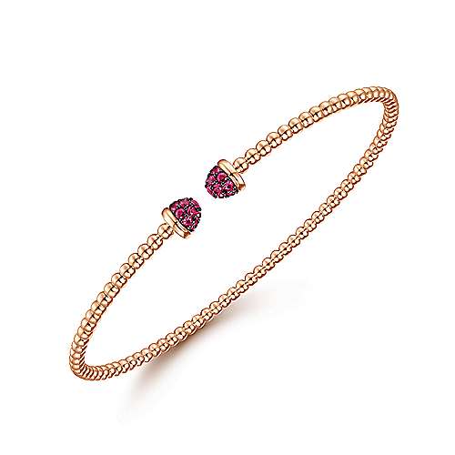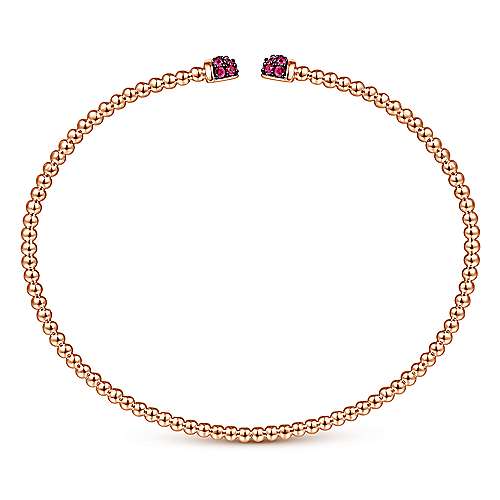 14K Rose Gold Bujukan Bead Cuff Bracelet with Ruby Pavé Caps