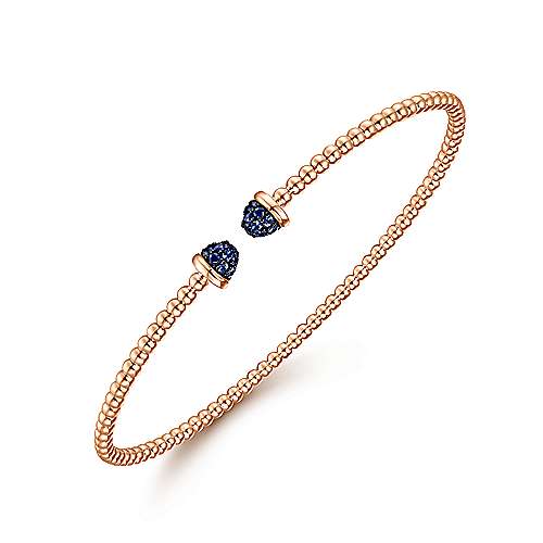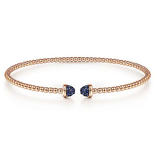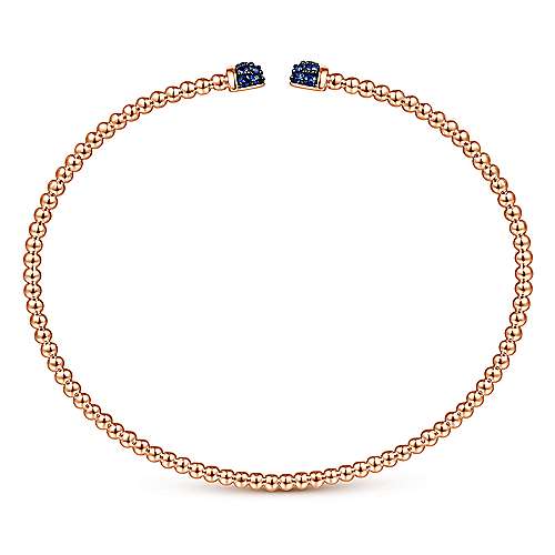 14K Rose Gold Bujukan Bead Cuff Bracelet with Sapphire Pavé Caps
