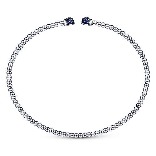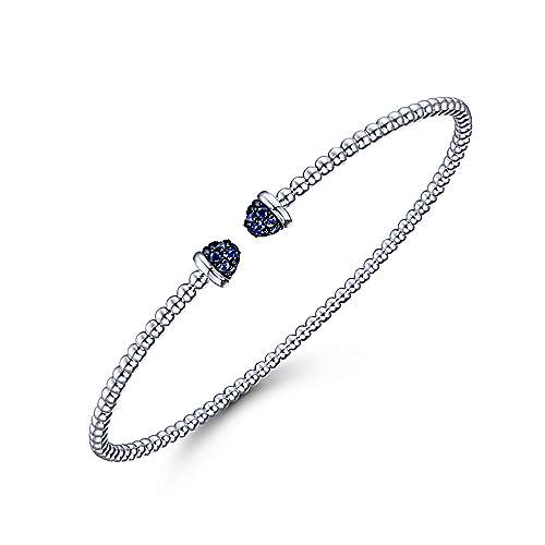 14K White Gold Bujukan Bead Cuff Bracelet with Sapphire Pavé Caps