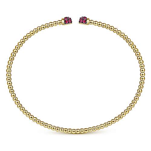 14K Yellow Gold Bujukan Bead Cuff Bracelet with Ruby Pavé Caps