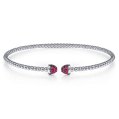 14K White Gold Bujukan Bead Cuff Bracelet with Ruby Pavé Caps