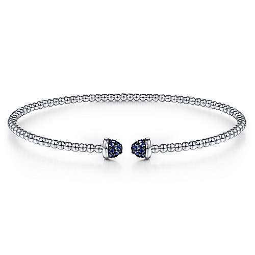 14K White Gold Bujukan Bead Cuff Bracelet with Sapphire Pavé Caps