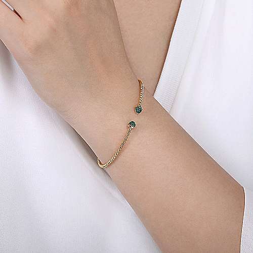14K Yellow Gold Bujukan Bead Cuff Bracelet with Emerald Pavé Caps