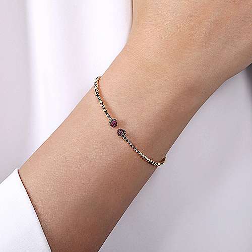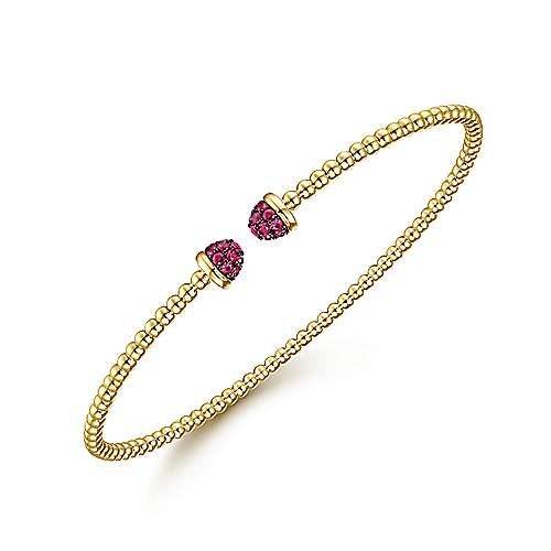 14K Yellow Gold Bujukan Bead Cuff Bracelet with Ruby Pavé Caps