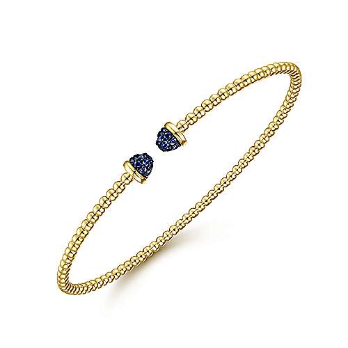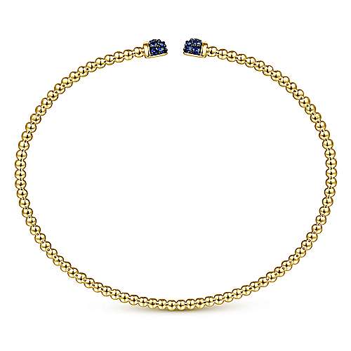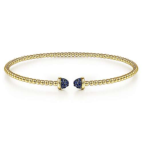 14K Yellow Gold Bujukan Bead Cuff Bracelet with Sapphire Pavé Caps