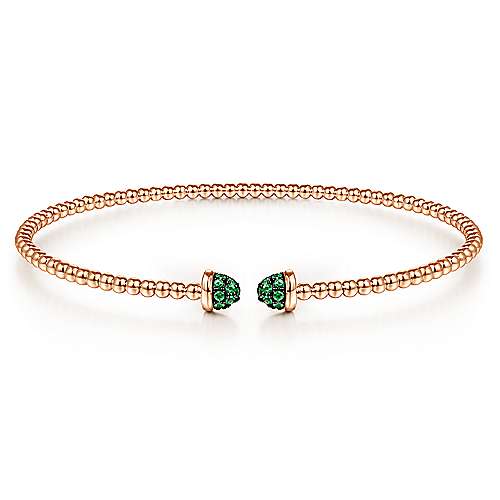14K Rose Gold Bujukan Bead Cuff Bracelet with Emerald Pavé Caps