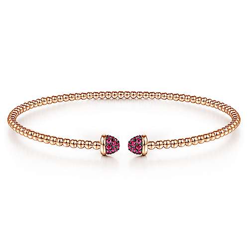 14K Rose Gold Bujukan Bead Cuff Bracelet with Ruby Pavé Caps