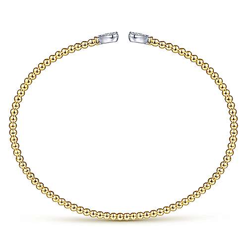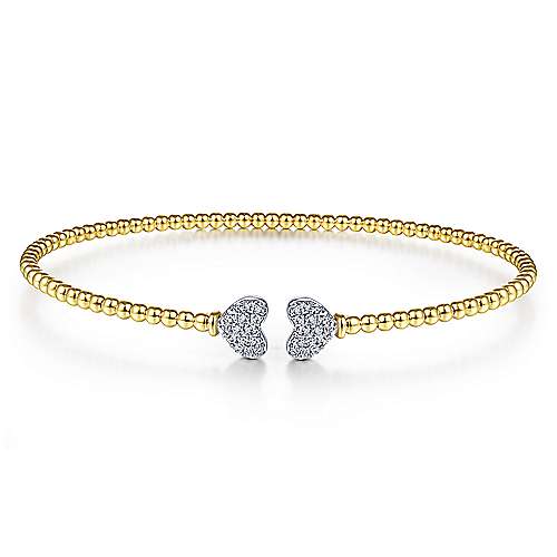 14K Yellow Gold Bujukan Split Cuff Bracelet with White Gold Pavé Diamond Hearts