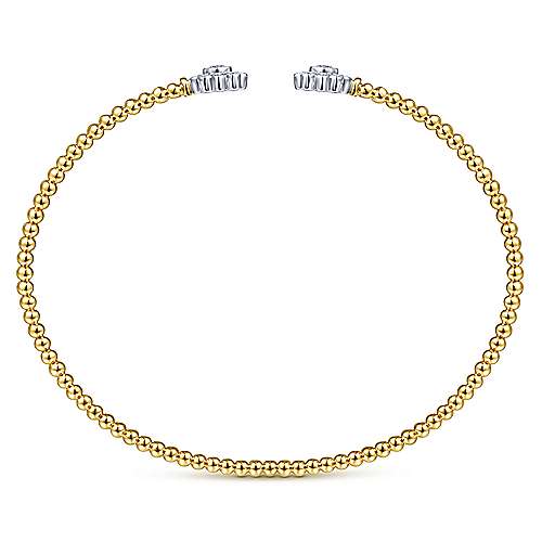 14K Yellow Gold Bujukan Split Cuff Bracelet with White Gold Diamond Flowers