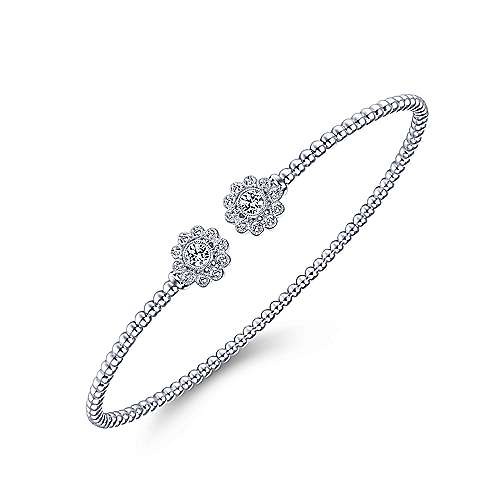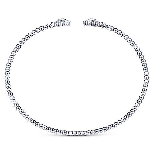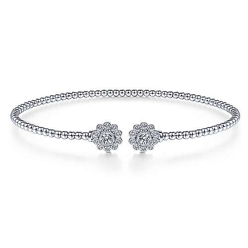 Split 14K White Gold Bujukan Bead Bangle with Floral Diamond Endcaps