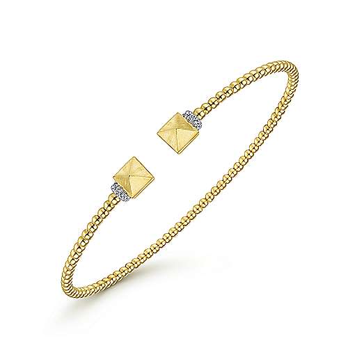 14K Yellow Gold Bujukan Split Cuff Bracelet with Pyramid and Diamond Caps