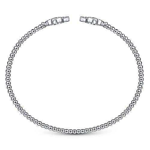 14K White Gold Bujukan Split Cuff Bracelet with Diamond Flower Caps