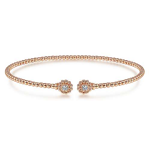 14K Rose Gold Bujukan Split Cuff Bracelet with Diamond Flower Caps