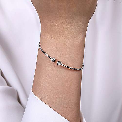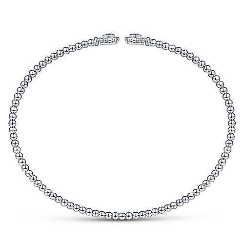14K White Gold Bujukan Split Cuff Bracelet with Diamond Flower Caps