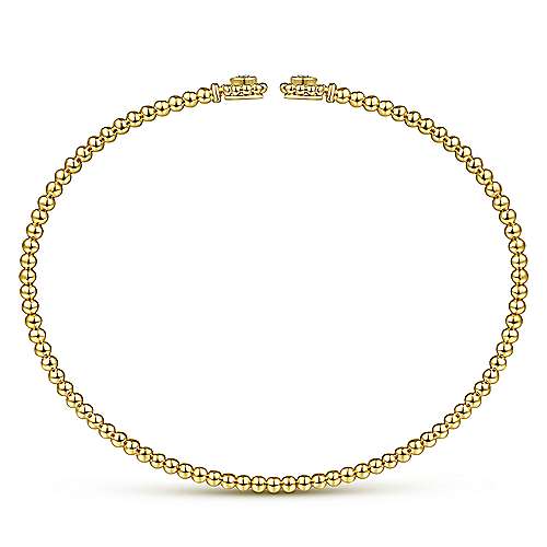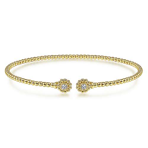 14K Yellow Gold Bujukan Split Cuff Bracelet with Diamond Flower Caps
