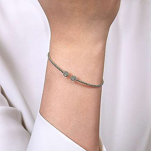 14K Yellow Gold Bujukan Split Cuff Bracelet with Diamond Flower Caps