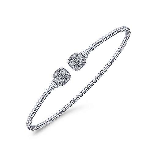 14K White Gold Bujukan Split Cuff Bracelet with Pavé Diamond Squares