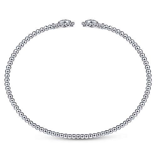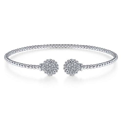 14K White Gold Bujukan Split Cuff Bracelet with Diamond Pavé Flower Caps