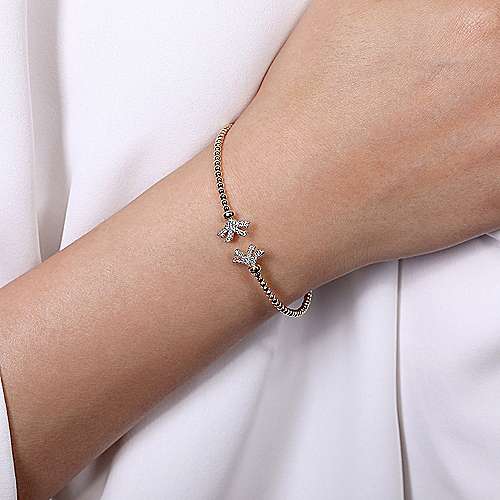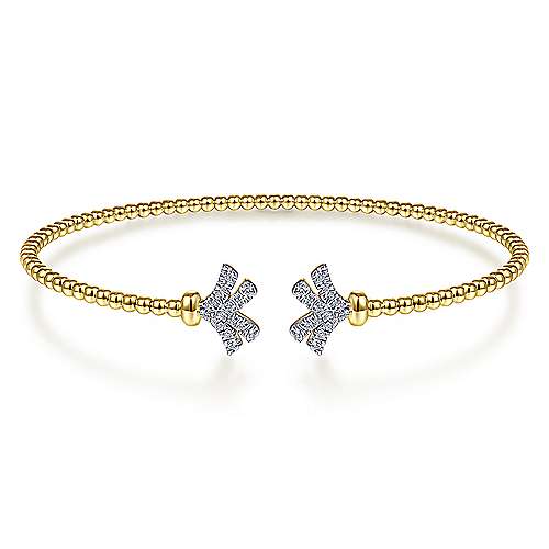 14K Yellow Gold Bujukan Split Cuff Bracelet with Diamond Pavé Fan Caps