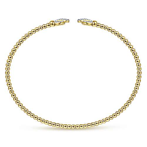 14K Yellow Gold Bujukan Split Cuff Bracelet with Diamond Pavé Fan Caps