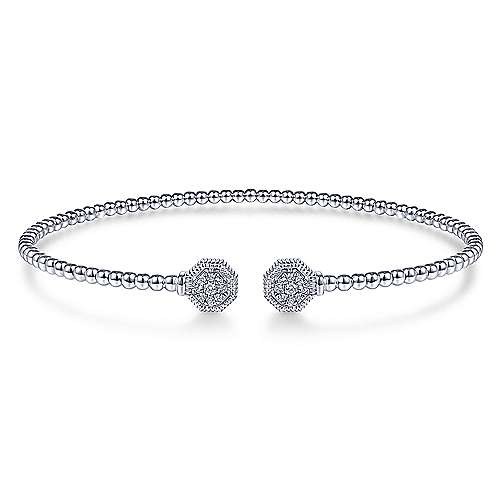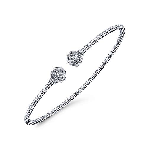14K White Gold Bujukan Split Cuff Bracelet with Diamond Pavé Hexagon Caps