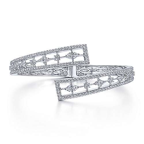 18K White Gold Diamond Pavé Bypass Bangle with Geometric Stations