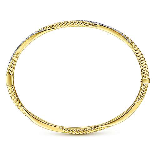 14K Yellow Gold Twisted Rope and Diamond Bangle