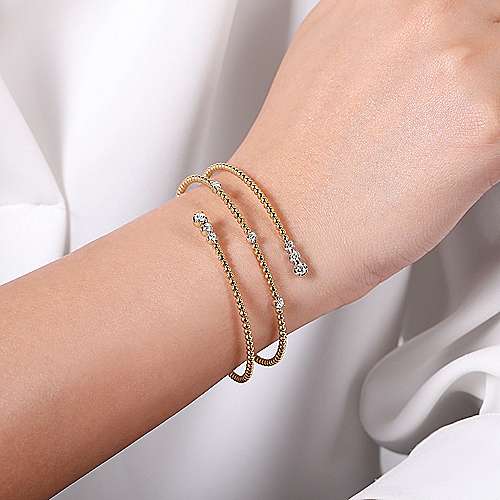 14K Yellow Gold Bujukan Bead Wrap Bracelet with White Gold Diamond Stations