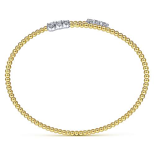 14K Yellow Gold Bujukan Bead Bypass Bangle with Graduating Diamond Caps