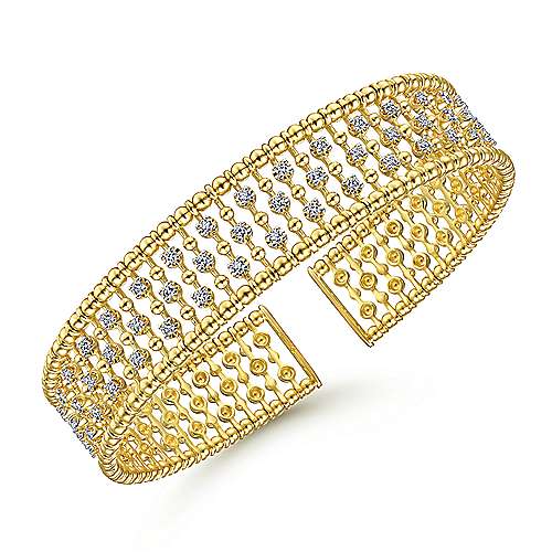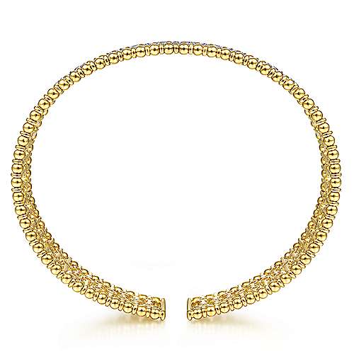 14K Yellow Gold Bujukan Bead Cuff Bracelet with Diamond Stations