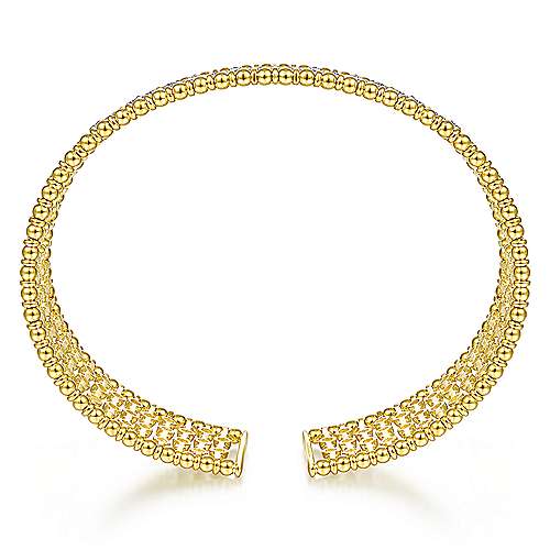 14K Yellow Gold Bujukan Bead Cuff Bracelet with Diamond Stations