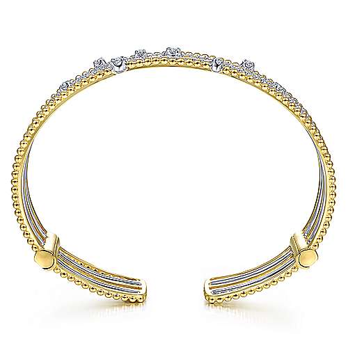 14K Yellow-White Gold Bujukan Bead Diamond Cuff Bracelet