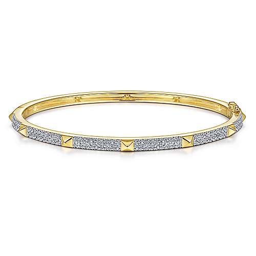 14K Yellow Gold/Pavé Diamond Bangle with Pyramid Stations
