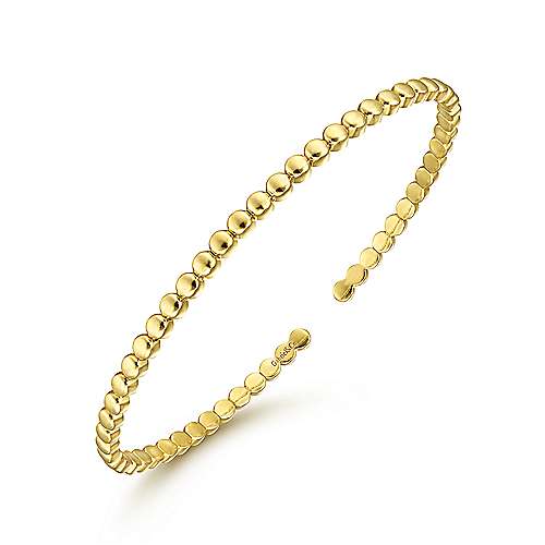 14K Yellow Gold Beaded Cuff Bracelet