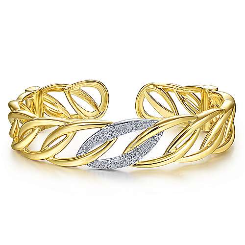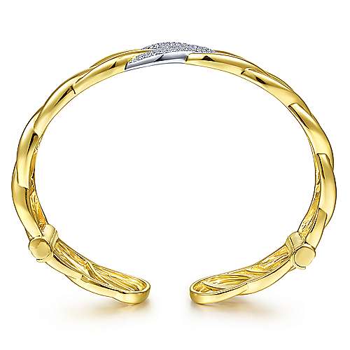14K Yellow Gold Chain Link Cuff Bracelet with White Gold Pavé Diamond Station