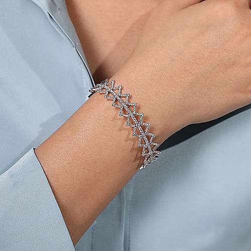 14K White Gold Zig Zag Diamond Bangle
