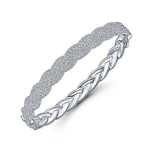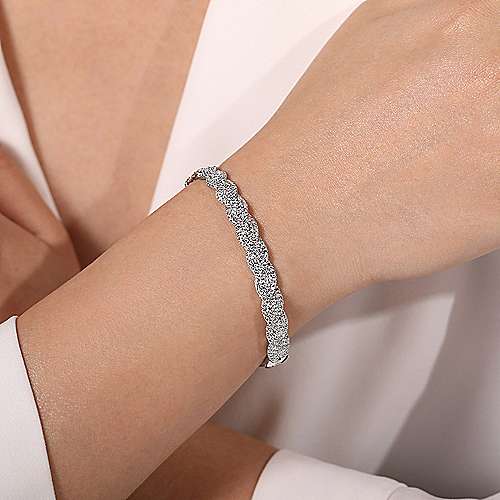 14K White Gold Diamond Pavé Braided Bangle