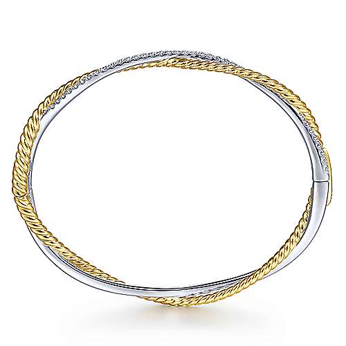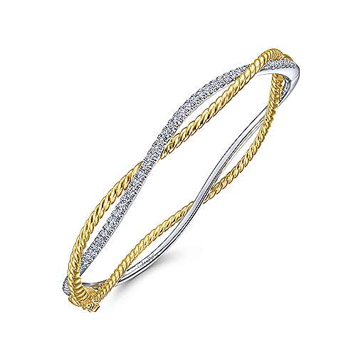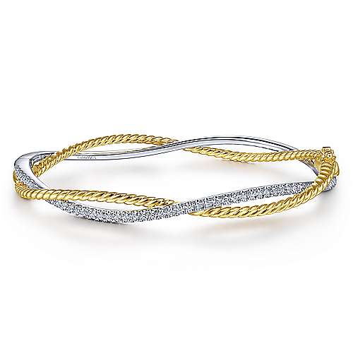 14K Yellow-White Twisted Rope and Diamond Bangle Bracelet